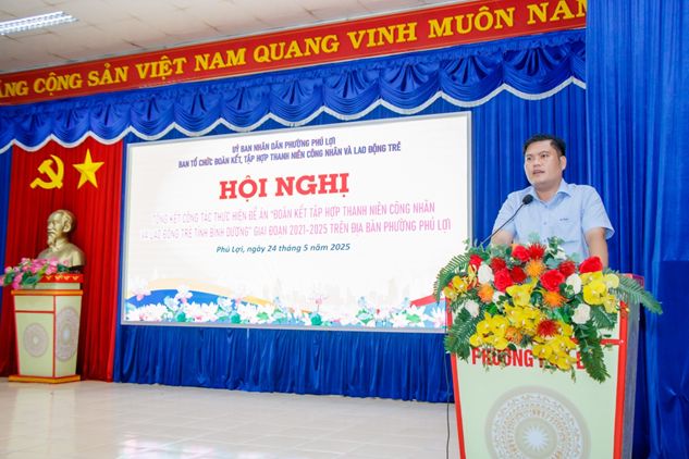 Tối ngày 24/5/2025, tại Hội trường Uỷ ban nhân dân phường Phú Lợi, Ban tổ chức Đề án thanh niên công nhân và lao động trẻ phường tổ chức Hội nghị tổng kết công tác thực hiện Đề án “Đoàn kết, tập hợp thanh niên công nhân và Lao động trẻ tỉnh Bình Dương, giai đoạn 2021 – 2025” trên địa bàn phường Phú Lợi. Tham dự chương trình, đại diện lãnh đạo địa phương có đồng chí Lê Thanh Liêm – Phó Bí thư thường trực Đảng uỷ, Chủ tịch HĐND phường, Trưởng Ban tổ chức Đề án; đồng chí Phạm Thị Thanh Trang – Phó Chủ tịch Hội đồng nhân dân phường. Về phía Ban tổ chức Đề án phường, có đồng chí Phạm Thị Hồng Quế - ĐUV, Bí thư Đoàn Thanh niên phường, Phó ban Thường trực tổ chức Đề án phường; đồng chí Nguyễn Hoàng Gia Bảo Hồng Ngọc - Chủ tịch Hội LHPN, phó trưởng ban tổ chức đề án. Đại diện BTC Đề án thành phố, có đồng chí Nguyễn Thanh Phong – Cán bộ đề án thành phố. Cùng sự hiện diện của các đồng chí là cán bộ Đề án thanh niên công nhân, các anh chị là Bí thư chi đoàn, chi hội trưởng, lực lượng nòng cốt thuộc các chi đoàn, chi hội Đề án Đoàn kết, tập hợp thanh niên công nhân và Lao động trẻ phường.