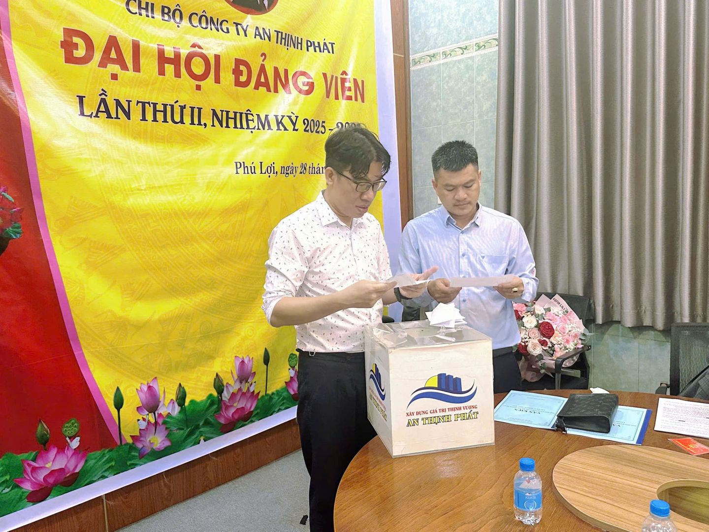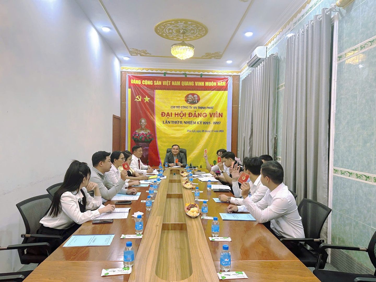 Đại hội đã được tiến hành đảm bảo các bước, quy trình theo kế hoạch, bầu 01 bí thư chi bộ: đồng chí Nguyễn Ngọc Anh được tín nhiệm bầu tiếp tục giữ chức vụ Bí thư chi bộ Công ty An Thịnh Phát, nhiệm kỳ 2025-2027. Tuy là chi bộ trẻ, đặc thù là đơn vị kinh doanh, dịch vụ; số lượng đảng viên còn chưa nhiều, nhưng từ khi thành lập (tháng 11/2020) đến nay, chi bộ đã có nhiều cố gắng, đặc biệt trong công tác tạo nguồn, phát triển Đảng (kết nạp 03 đảng viên mới trong nhiệm kỳ), các hoạt động an sinh xã hội trong và ngoài địa bàn, …