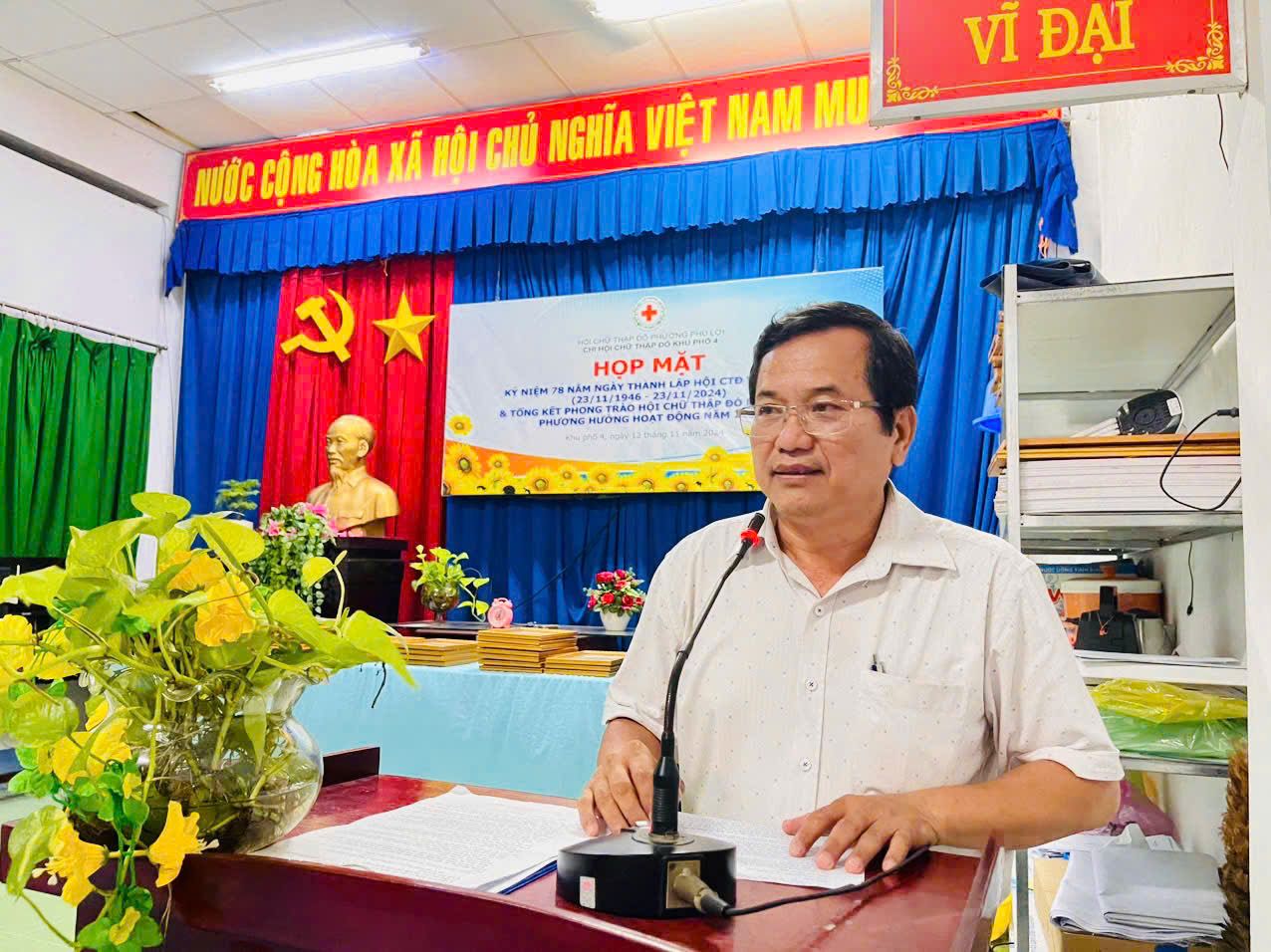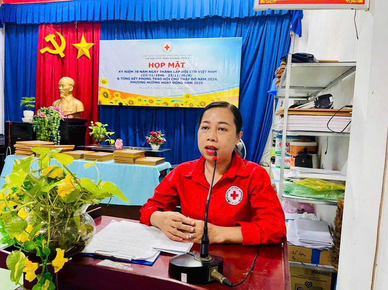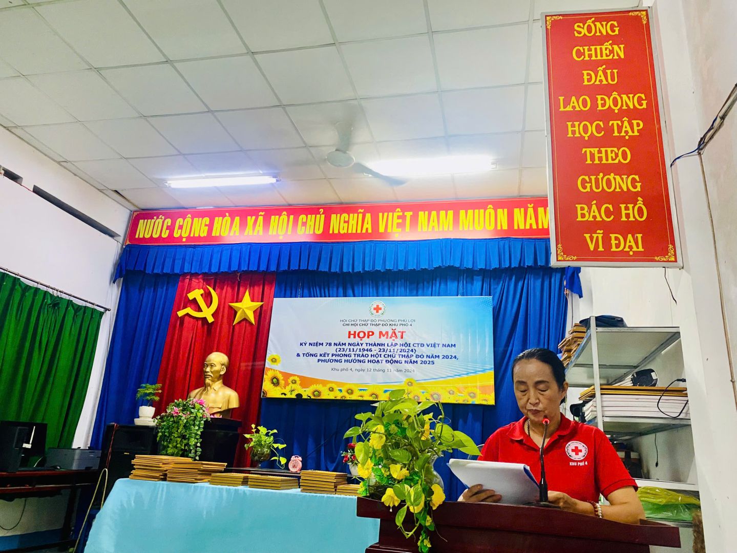 Thực hiện chương trình công tác Hội Chữ thập đỏ, tối ngày 12/11/2024, Chi hội chữ thập đỏ Khu phố 4, phường Phú Lợi tổ chức Họp mặt tổng kết hoạt động Hội và phong trào Chữ thập đỏ năm 2024 và phương hướng nhiệm vụ năm 2025.