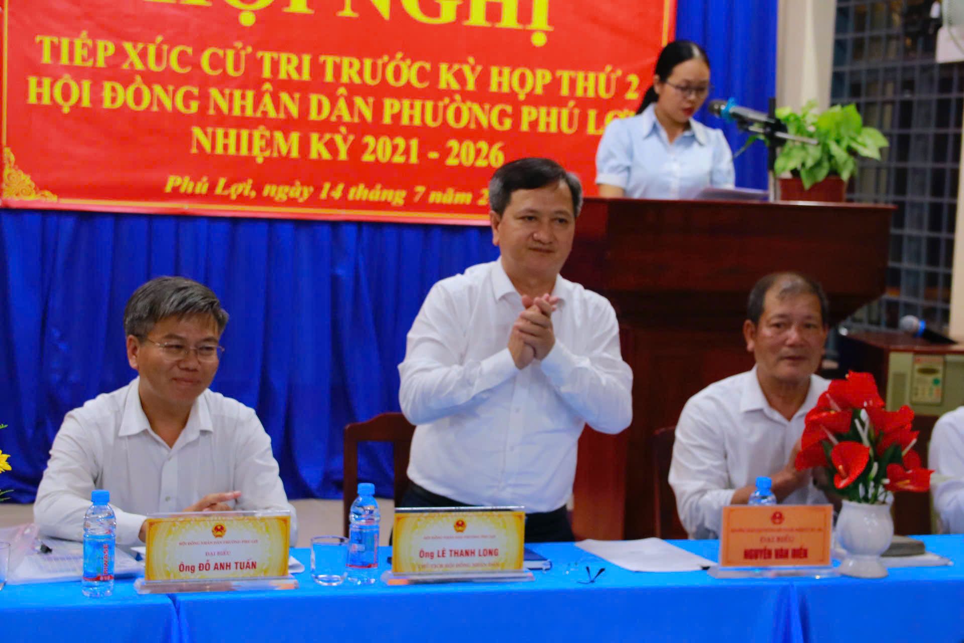 Tối ngày 14/7, Hội đồng nhân dân phường Phú Lợi tổ chức hội nghị tiếp xúc cử tri Khu phố 5, 6 (phường Hiệp Thành cũ) theo Công văn số 01/CV-HĐND ngày 11/7/2025. Dự hội nghị có ông Lê Thanh Long – Bí thư Đảng ủy, Chủ tịch HĐND phường.