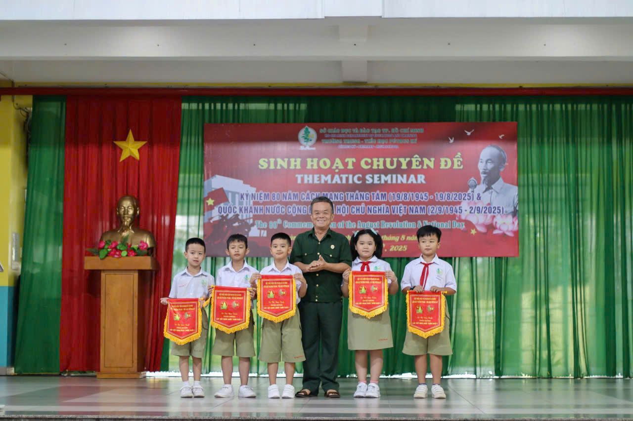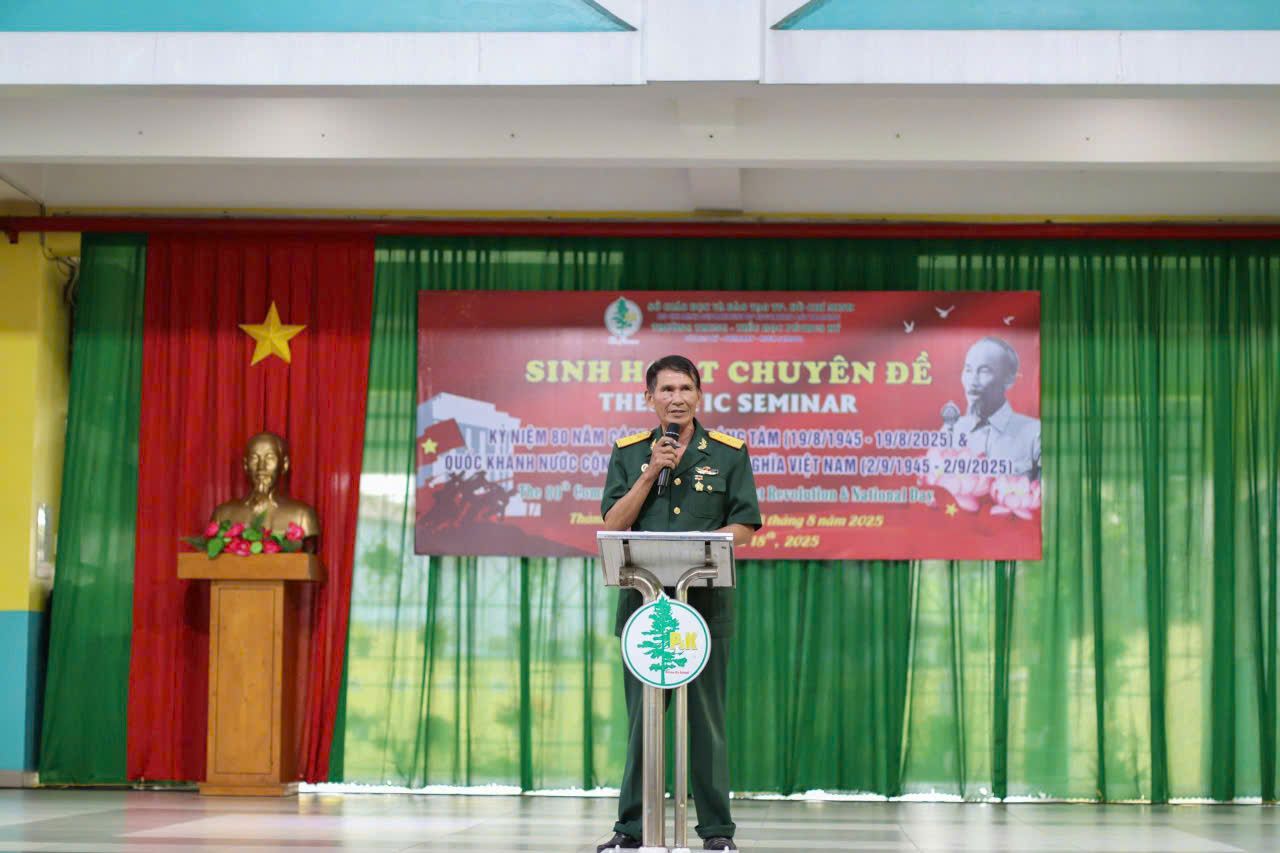 Sáng ngày 18/8/2025, hòa chung không khí cả nước hân hoan kỷ niệm 80 năm Cách mạng Tháng Tám thành công (19/8/1945 - 19/8/2025) và Quốc khánh nước Cộng hòa xã hội chủ nghĩa Việt Nam (02/9/1945 - 02/9/2025). Hội Cựu chiến binh phường Phú Lợi (TP.HCM) phối hợp với Ban Giám hiệu, Ban Chỉ huy Liên đội Trường Tiểu học và THCS Petrus Ký tổ chức sinh hoạt chuyên đề, kết hợp nói chuyện truyền thống cho hơn 1.200 cán bộ, giáo viên, học sinh.