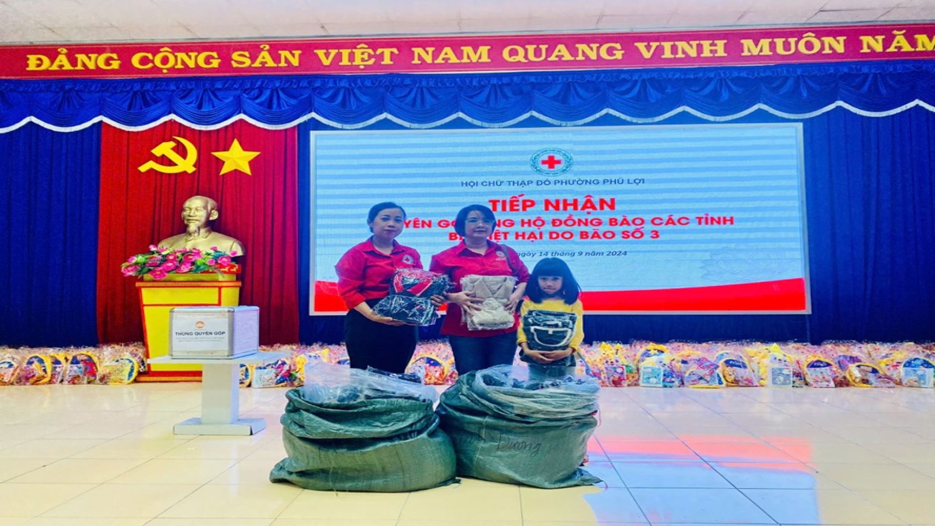 Hưởng ứng phát động của Ủy ban MTTQ Việt Nam tỉnh, Hội Chữ thập đỏ tỉnh và Hội Chữ thập đỏ TPTDM; nhằm kịp thời chia sẻ với những khó khăn, mất mát, thiệt hại của đồng bào các tỉnh do cơn bão số 3 gây ra. Hội Chữ thập đỏ phường Phú Lợi đã khẩn trương triển khai và kêu gọi sự chung tay hỗ trợ từ các Chi hội trực thuộc và cộng đồng để giúp đồng bào sớm vượt qua khó khăn, ổn định cuộc sống.