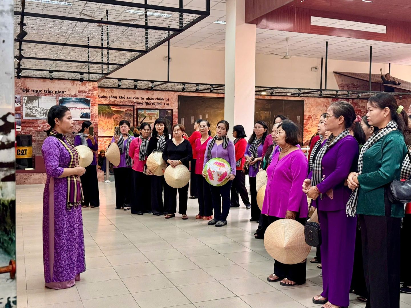 Đến với di tích nhà tù Phú Lợi, Hội tổ chức thắp hương tưởng niệm các anh hùng đã hy sinh. Sau đó, đoàn được tham quan phòng trưng bày của khu di tích là nơi lưu giữ những hiện vật, hình ảnh về Nhà tù Phú Lợi năm xưa cùng một số địa điểm khác như phòng giam, lồng kẽm gai, lô cốt,…. Ngoài ra, các chị em còn được lắng nghe thuyết minh về quá trình hình thành nhà tù, các sự kiện lịch sử đã diễn ra tại nơi đây.