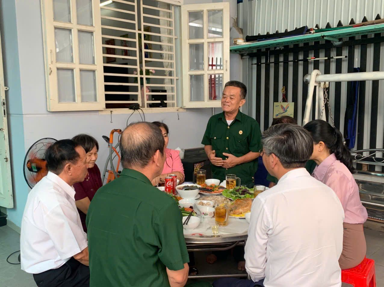 Trong không khí ấm áp, nghĩa tình của gia đình, đoàn công tác còn được ông Lê Quang Vịnh chia sẻ về ký ức những năm tháng tham gia chiến tranh ác liệt, gian khổ nhưng rất đỗi tự hào. Ông Vịnh tâm sự: “Tôi rất xúc động khi được đoàn công tác và các cháu đoàn viên thanh niên của phường đến sinh hoạt cùng gia đình, nấu bữa cơm ấm áp, nghĩa tình, rất ý nghĩa, là nguồn động viên rất lớn đối với chúng tôi!”