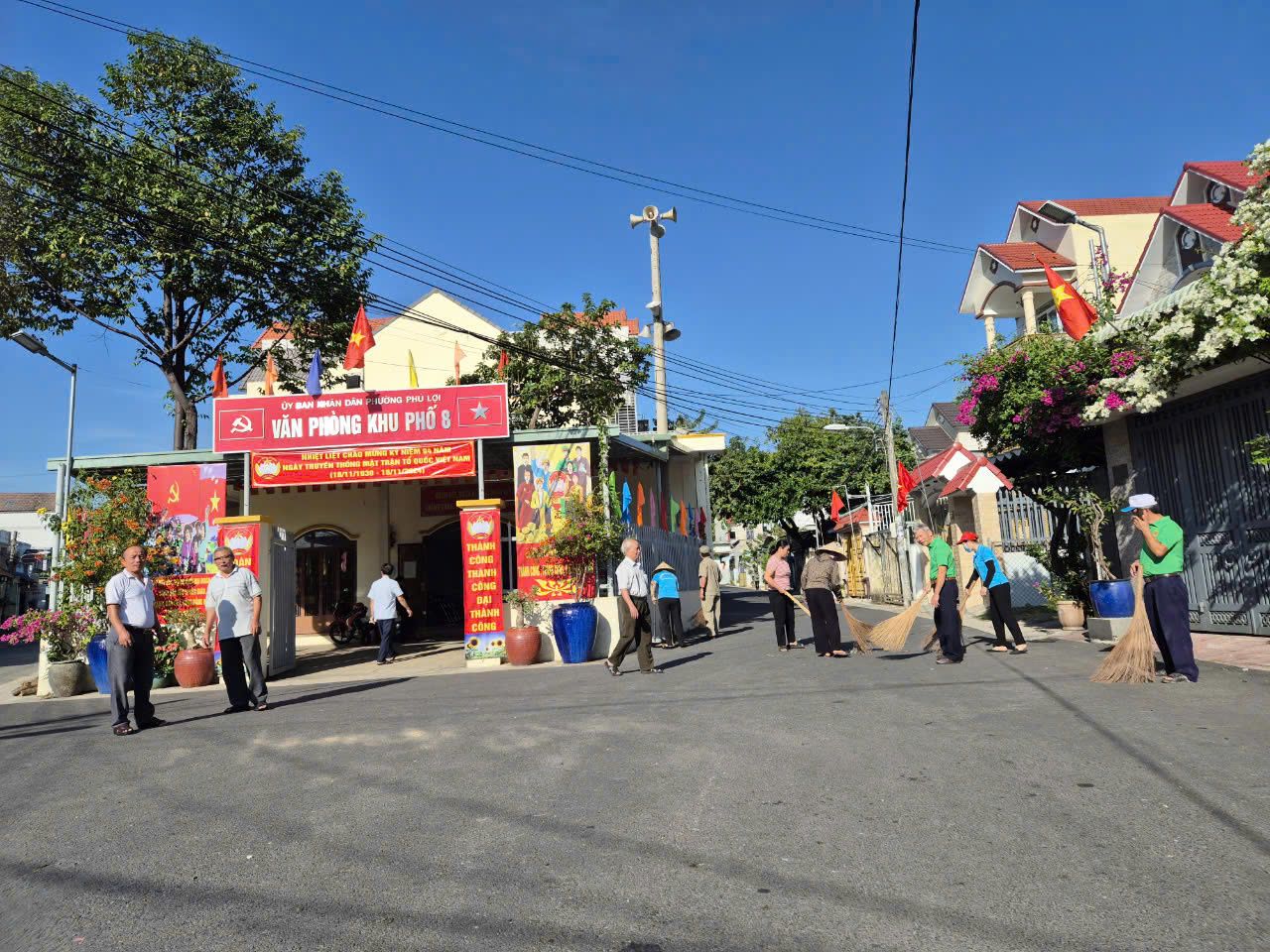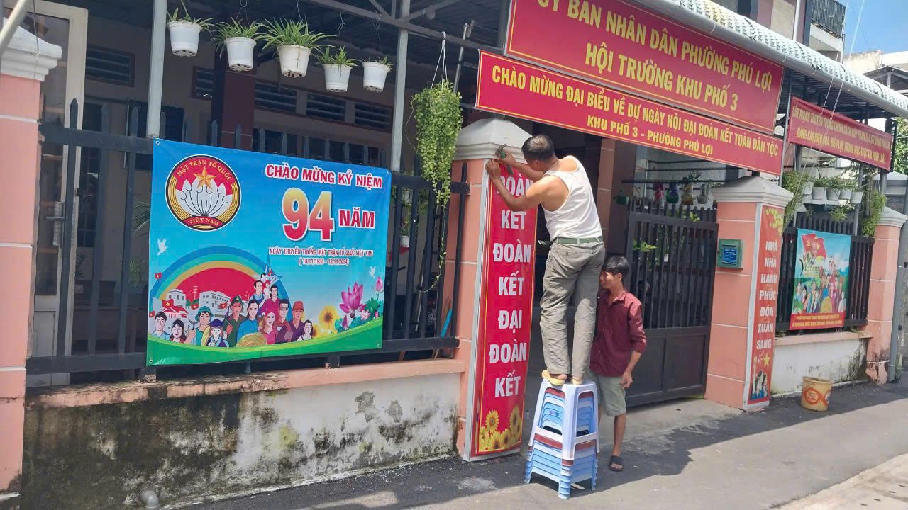 Tại các khu phố, mọi người cùng nhau làm các phần việc như quét dọn các tuyến đường, tuyến hẻm, làm vệ sinh, dọn cỏ, cạo xóa biển quảng cáo rao vặt trái phép, thực hiện trang trí cổng chào, treo băng-rôn, khẩu hiệu, luyện tập các tiết mục biễu diễn... để chuẩn bị cho Ngày hội Đại đoàn kết dân tộc năm 2024. Bên cạnh đó, thực hiện sự chỉ đạo của Ủy ban MTTQ Việt Nam thành phố, các Ban Công tác Mặt trận cũng vận động người dân treo cờ từ ngày 09 đến hết ngày 11/11/2024. Ngày hội Đại đoàn kết toàn dân tộc hàng năm là Ngày hội của toàn dân, góp phần xây dựng, củng cố vững chắc khối đại đoàn kết toàn dân tộc.