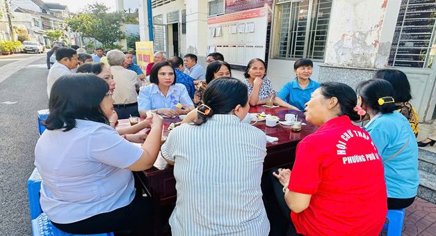 Phường Phú Lợi tiếp tục thực hiện mô hình "Cà phê sáng - Trao đổi với nhân dân" tại Văn phòng khu phố 2