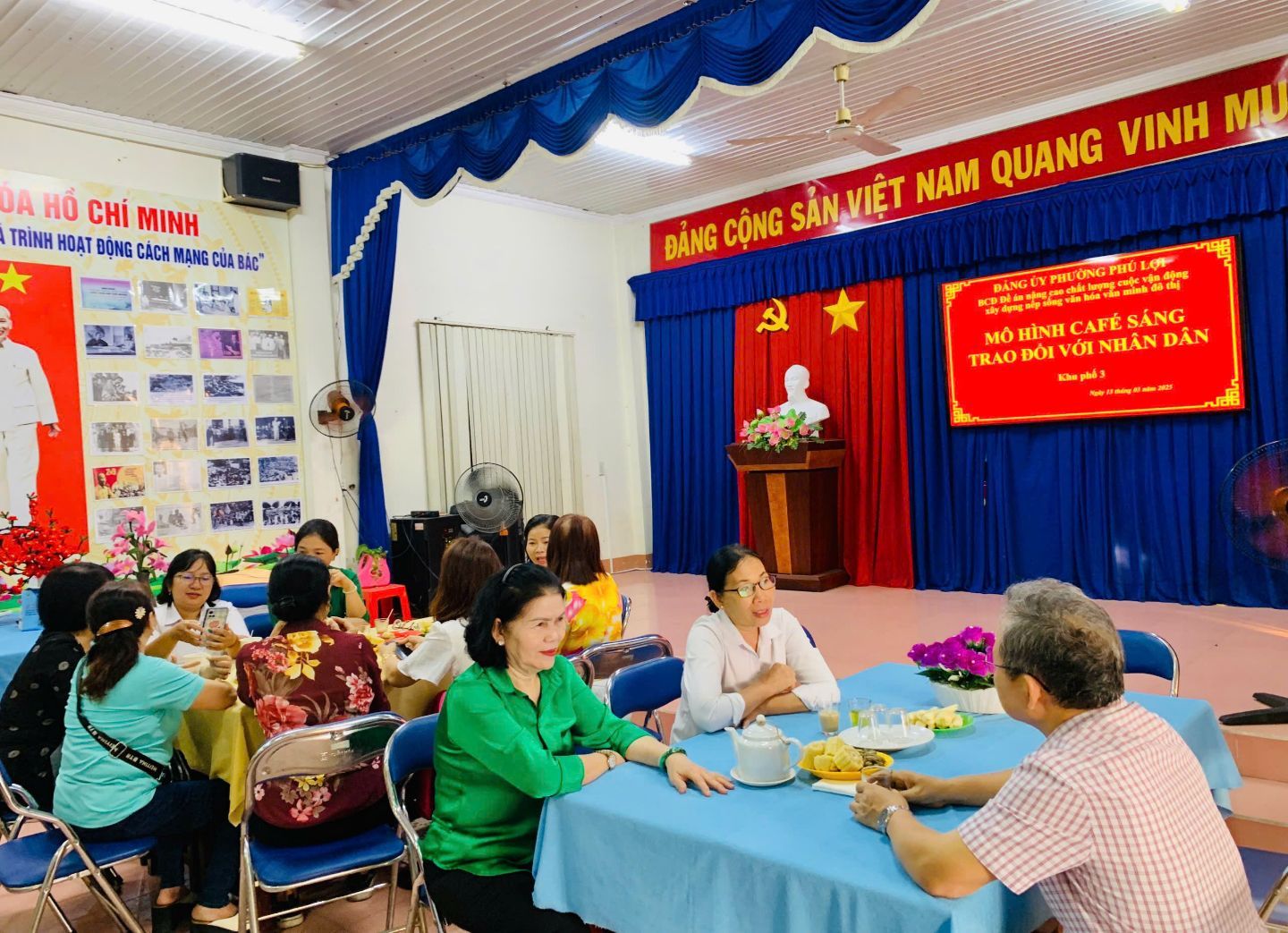 Phường Phú Lợi tiếp tục thực hiện mô hình "Cà phê sáng - Trao đổi với nhân dân" tại Văn phòng khu phố 3