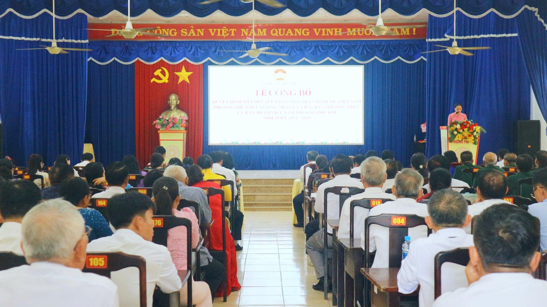 Tại Hội nghị, Ban Tổ chức đã công bố Quyết định của Ban Thường trực Ủy ban MTTQ Việt Nam TP. Hồ Chí Minh về việc thành lập và công nhận Ủy viên Ủy ban, Ban Thường trực Ủy ban MTTQ Việt Nam phường Phú Lợi. Đồng thời, công bố các quyết định thành lập và ra mắt Ban Chấp hành, Ban Thường vụ và các chức danh lãnh đạo của Đoàn Thanh niên, Hội Liên hiệp Phụ nữ, Hội Cựu chiến binh.