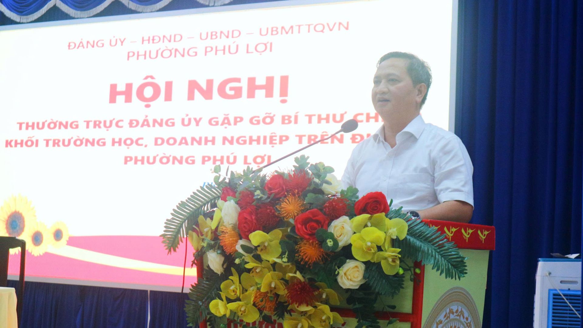 Phát biểu tại hội nghị, đồng chí Lê Thanh Long – Bí thư Đảng ủy, Chủ tịch HĐND phường cho biết, việc thành lập phường Phú Lợi mới là bước chuyển quan trọng, với địa bàn rộng, dân số đông, khối lượng công việc lớn, đòi hỏi sự đồng lòng, trách nhiệm của cả hệ thống chính trị. Phường đang triển khai mô hình quản lý mới, trực tiếp quản lý các trường học, phân bổ nhân sự, ngân sách, đảm bảo đủ lớp học, duy trì chất lượng giáo dục, đồng thời lấy ý kiến đặt lại tên các khu phố, hỗ trợ các chi bộ ổn định hoạt động sau sáp nhập. Đồng chí mong muốn các chi bộ, trường học, doanh nghiệp tiếp tục phối hợp, đồng hành cùng phường thực hiện tốt các nhiệm vụ chính trị, xây dựng phường Phú Lợi ổn định, phát triển.