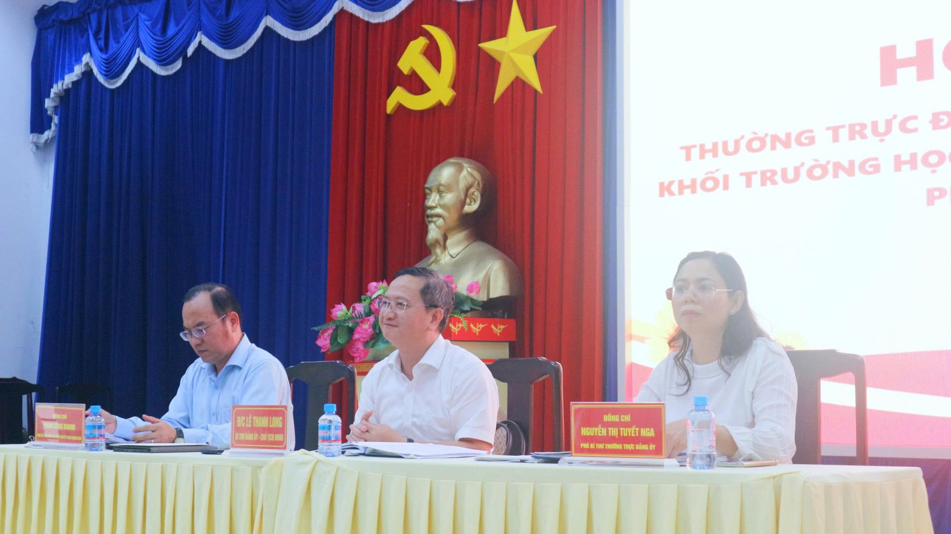 Dự hội nghị có đồng chí Lê Thanh Long – Bí thư Đảng ủy, Chủ tịch HĐND phường; đồng chí Nguyễn Thị Tuyết Nga – Phó Bí thư Thường trực Đảng ủy phường; đồng chí Phan Công Khanh – Phó Bí thư, Chủ tịch UBND phường; cùng các đồng chí trong Ban Thường vụ, Ban Chấp hành Đảng bộ phường và hơn 30 Bí thư Chi bộ trường học, doanh nghiệp.