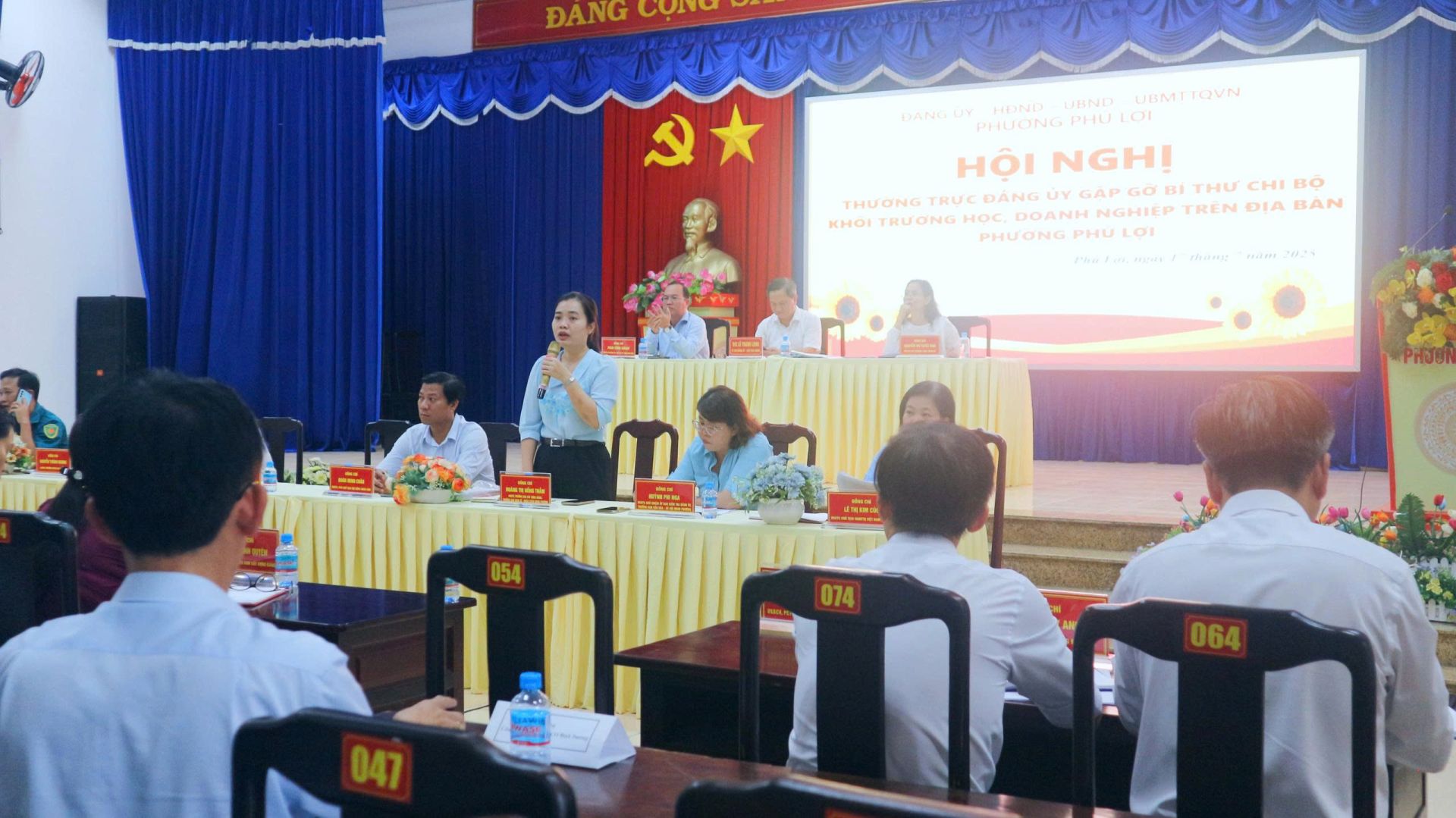 Buổi gặp gỡ diễn ra nghiêm túc, dân chủ, thể hiện sự quan tâm và quyết tâm của Đảng ủy phường Phú Lợi trong việc đồng hành cùng các chi bộ trường học, doanh nghiệp, tạo nền tảng thực hiện tốt nhiệm vụ trong giai đoạn mới.