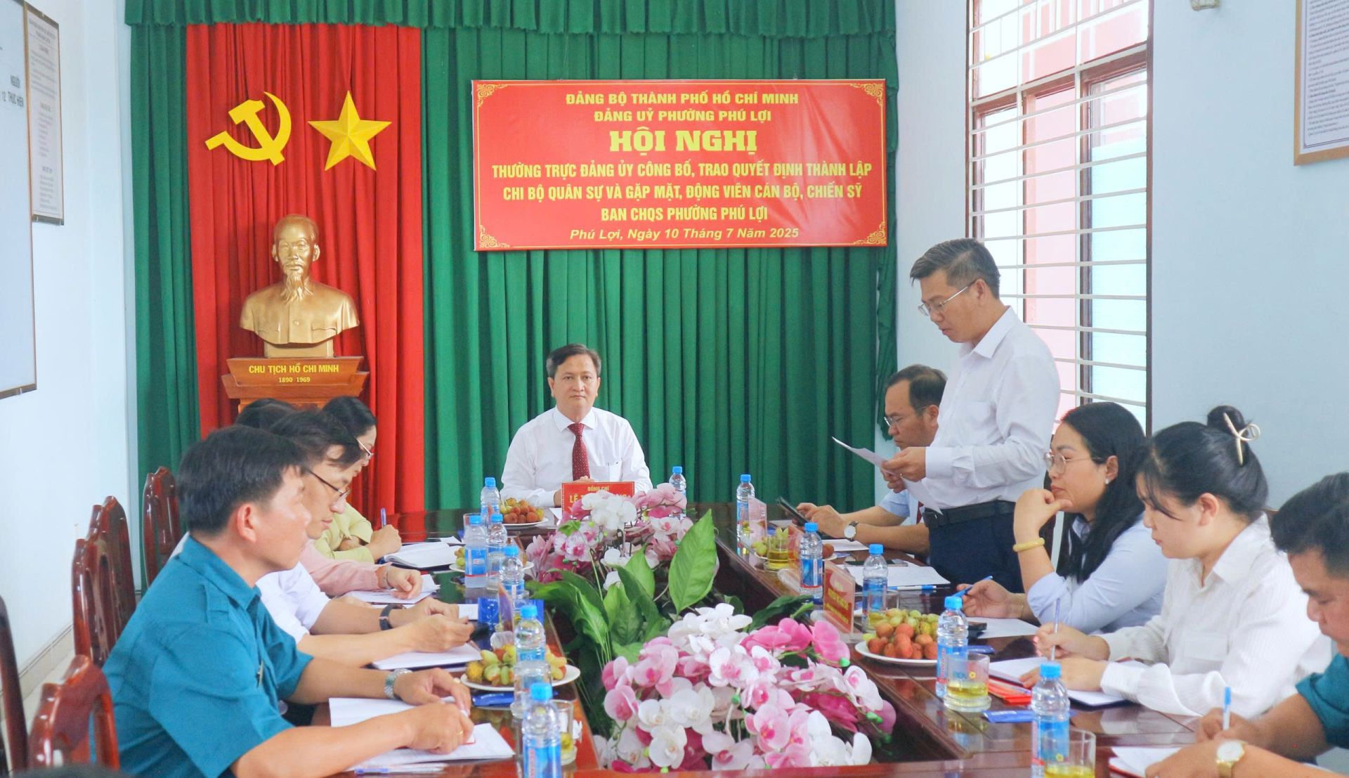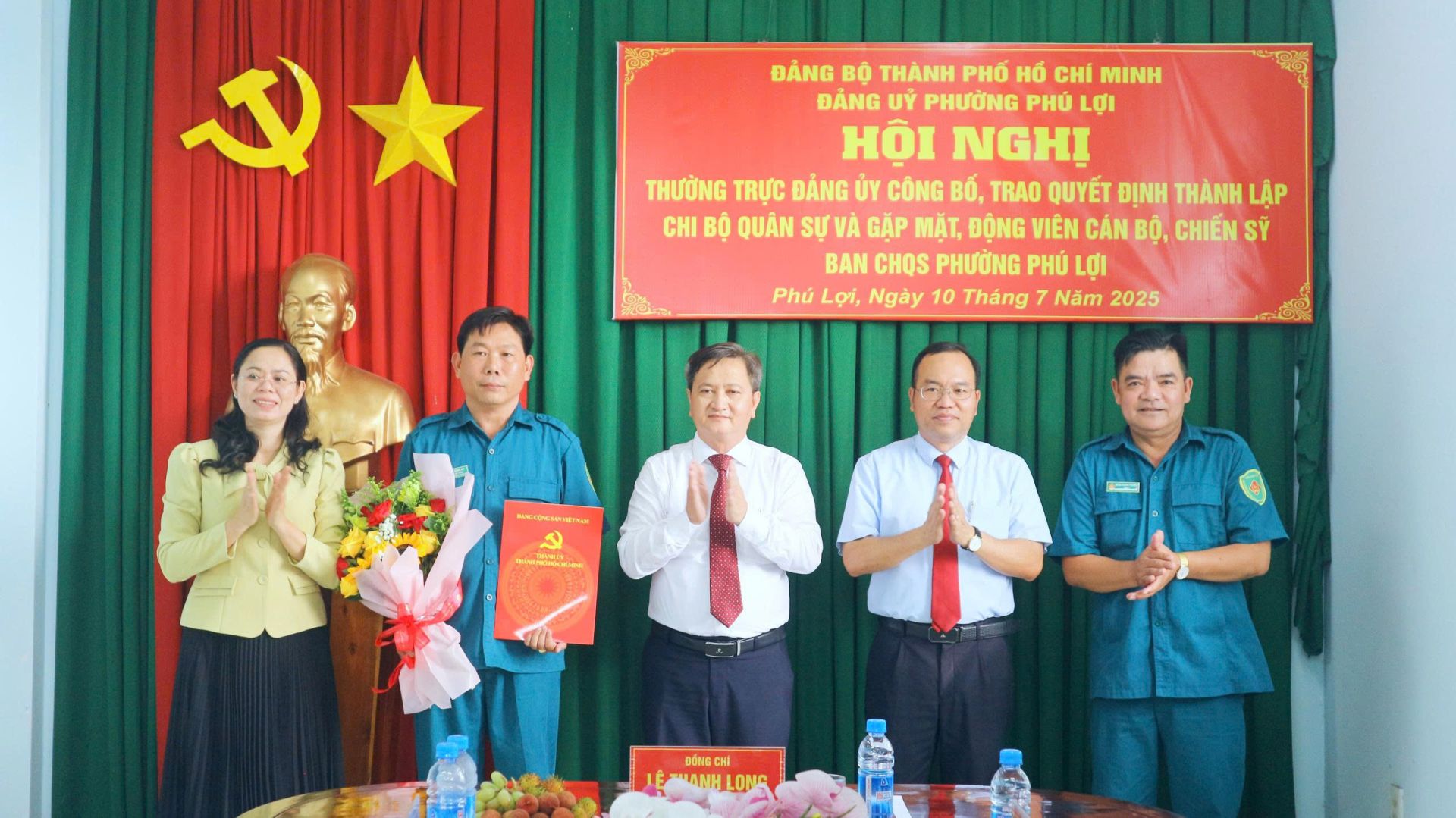 Chiều ngày 10/7, Thường trực Đảng ủy phường Phú Lợi tổ chức Hội nghị công bố và trao Quyết định thành lập Chi bộ Quân sự phường. Dự hội nghị có đồng chí Lê Thanh Long – Bí thư Đảng ủy, Chủ tịch HĐND phường; đồng chí Nguyễn Thị Tuyết Nga – Phó Bí thư Thường trực Đảng ủy; đồng chí Phan Công Khanh – Phó Bí thư, Chủ tịch UBND phường; cùng các đồng chí trong Ban Thường vụ Đảng ủy, đại diện các ban ngành, đoàn thể và toàn thể cán bộ, chiến sĩ lực lượng dân quân thường trực.