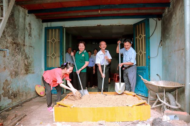 Tại buổi lễ, các đại biểu đã thực hiện nghi thức xúc cát khởi công, chính thức bắt đầu quá trình xây dựng căn nhà Đại đoàn kết cho gia đình bà Dung.